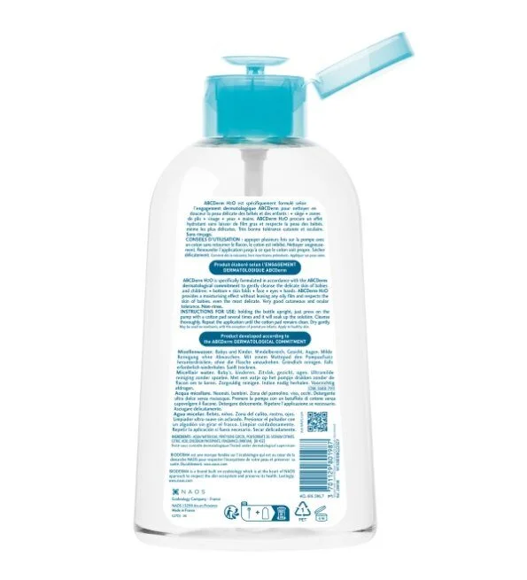 ABCDerm H2O est une solution micellaire qui nettoie en douceur la peau délicate des nourrissons et des jeunes enfants.