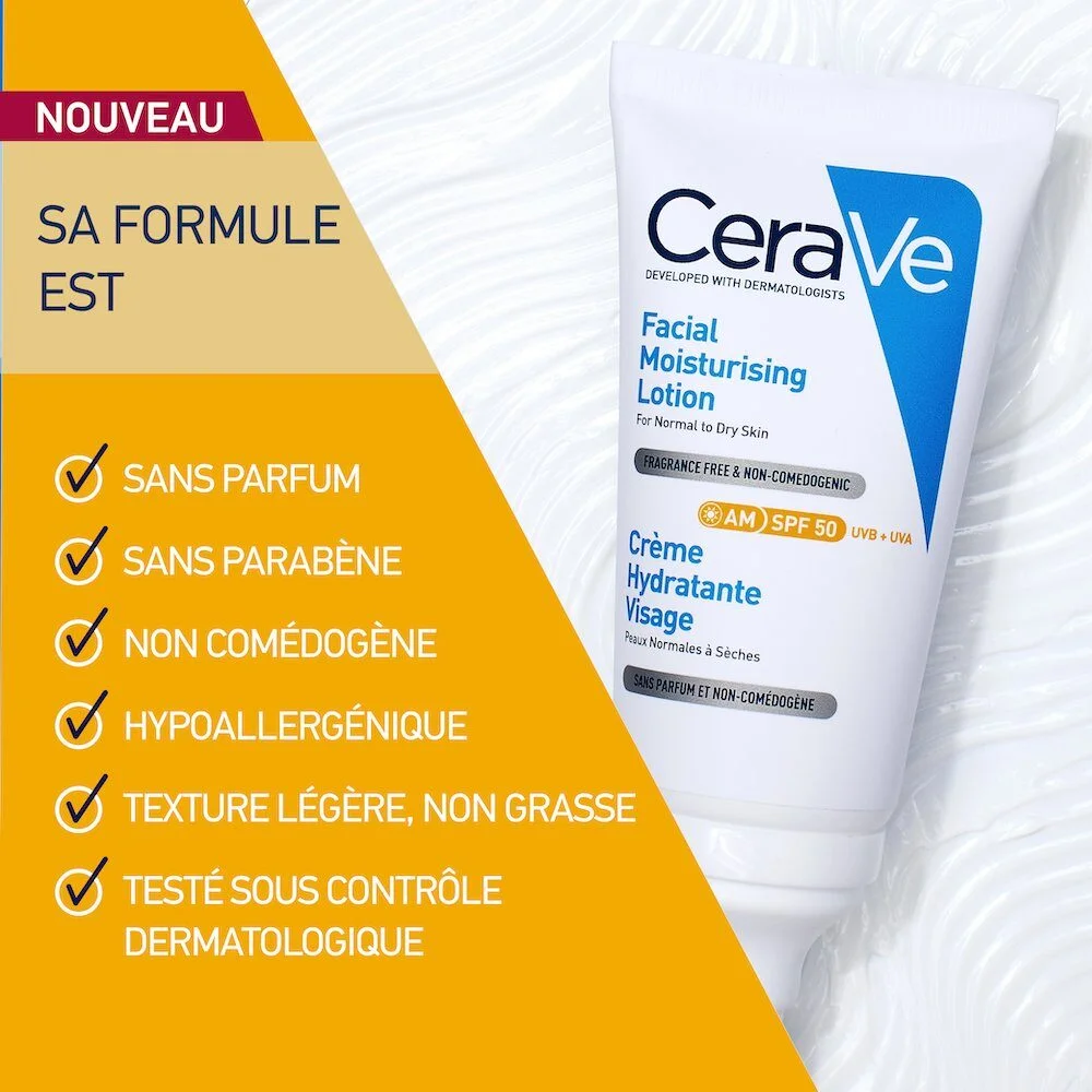 Boutique Officielle : Protégez et hydratez votre visage au quotidien avec la Crème Hydratante SPF 50 CeraVe + sa Crème Lavante 20ml OFFERTE !