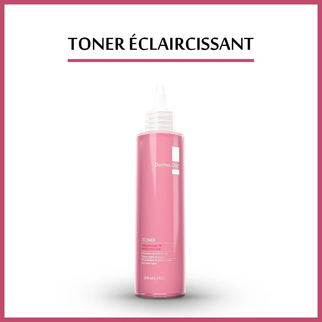 Le DermaDoc Toner – 200ml est une lotion tonique exfoliante et hydratante, enrichie en acide glycolique à 7% pour une exfoliation douce et en acide hyaluronique pour une hydratation profonde. Conçu pour tous les types de peaux, ce toner améliore visiblement la texture de la peau, réduit les taches pigmentaires et apporte de l’éclat dès les premières utilisations.