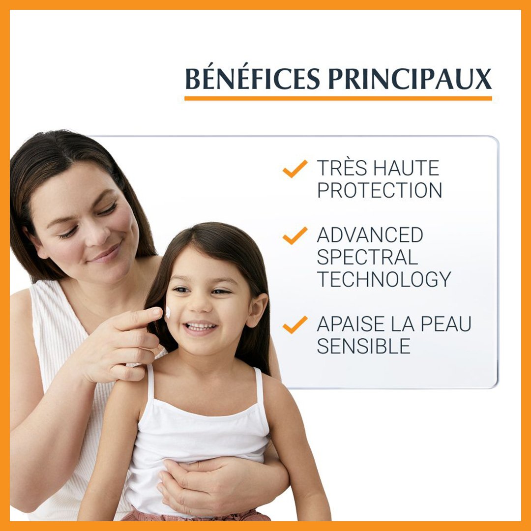 Très haute protection UVA/UVB (conforme aux recommandations de l’UE) contre les dommages causés par le soleil sur la peau délicate des enfants.