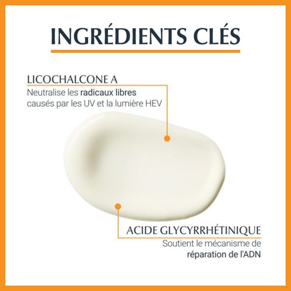 Formule INCI : Aqua, Homosalate, Octocrylene, Glycerin, Dicaprylyl Carbonate, Alcohol Denat., Butyl Methoxydibenzoylmethane, Ethylhexyl Salicylate, Bis-Ethylhexyloxyphenol Methoxyphenyl Triazine, C18-36 Acid Triglyceride, Ceteareth 20, Phenylbenzimidazole Sulfonic Acid, VP/Hexadecene Copolymer, Glycyrrhiza Inflata Root Extract, Glycyrrhetinic Acid, Acrylates/C10-30 Alkyl Acrylate Crosspolymer, Ethylhexylglycerin, 1.2 Hexanediol, Phenoxyethanol.