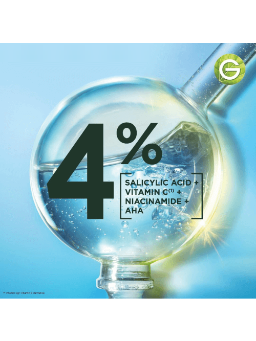 Découvrez notre nouveau Sérum Booster Garnier Fast Clear, avec notre concentration la plus élevée jamais vue de 4%* (Acide Salicylique + Vitamine C^+ Niancinamide + AHA). Après la 1ère utilisation, vous pouvez vous attendre à -35 % d’excès de sébum** et +46 % d’éclat***. En 28 jours, vous pouvez vous attendre à 90 % de visibilité des boutons en moins****.