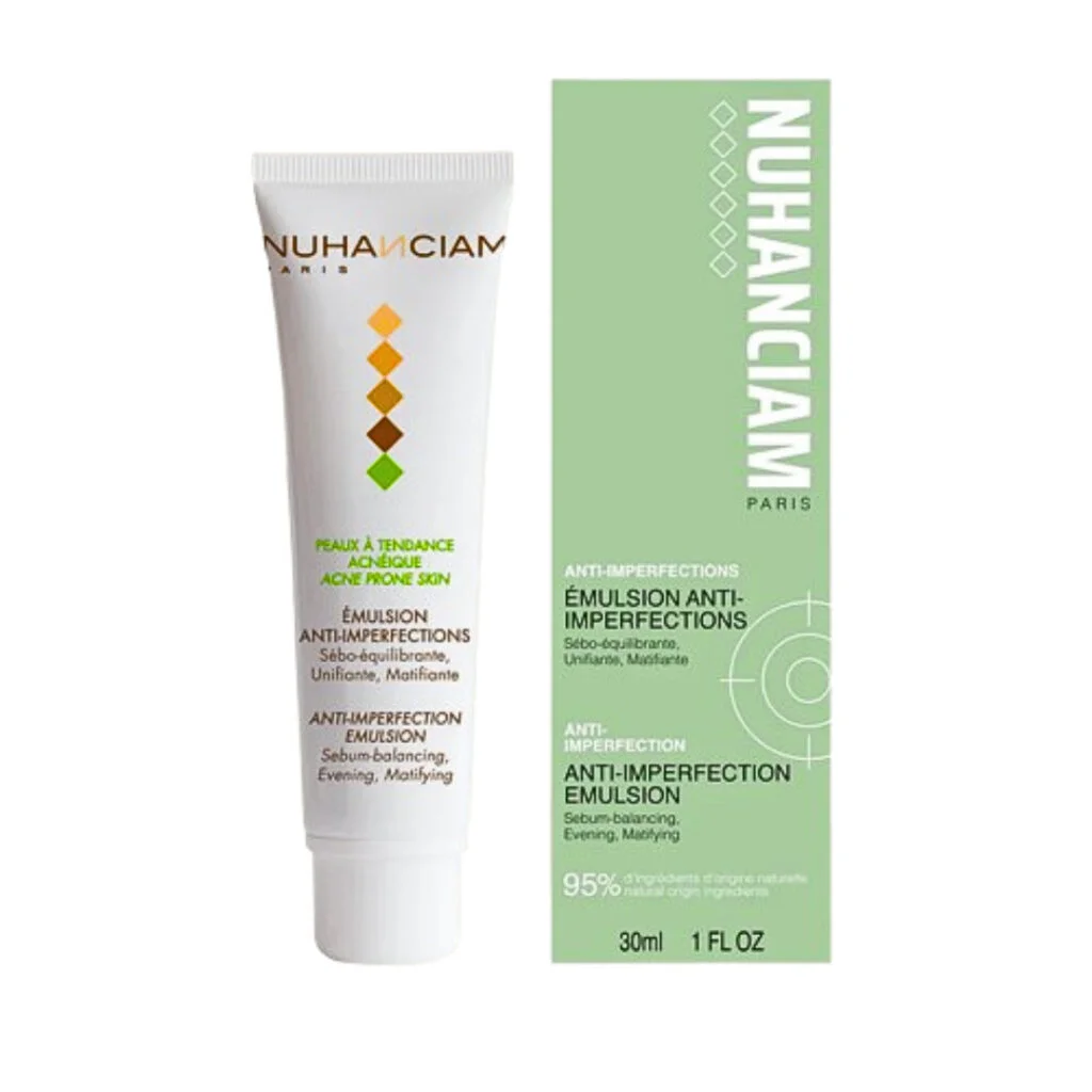Sébo-régulatrice, matifiante, unifiante, la formule de l’Emulsion Anti-Imperfections est une révolution cosmétique qui assure une transformation globale des peaux à problèmes : imperfections, pores, brillance, rougeurs, marques, teint irrégulier.