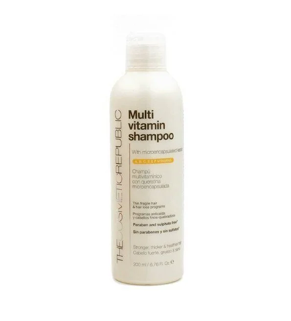 Ce shampooing multivitaminé sans paraben et sans sulfate avec vitamines A, B, C, E et F et microsphères de kératine a été spécialement conçu pour les cheveux faibles et fins et les cas de perte de cheveux.