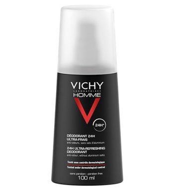 VICHY HOMME Déodorant Vaporisateur Ultra-Frais garde les aisselles fraîches et sans odeur pendant 24h.