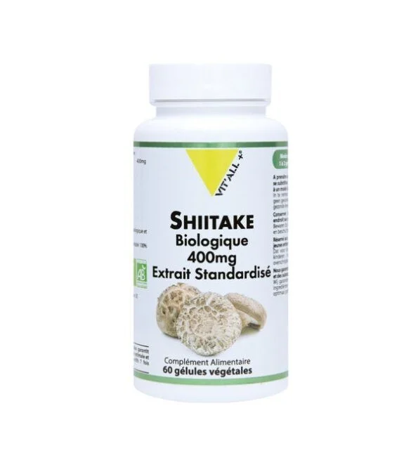 L’Extrait Standardisé de Shiitaké Biologique VIT’ALL+® garantit une stabilité de dosage, une pureté optimale et une concentration en principes actifs 8 fois supérieure à la poudre de plante, soit l’équivalent de 3,2g de champignon séché.